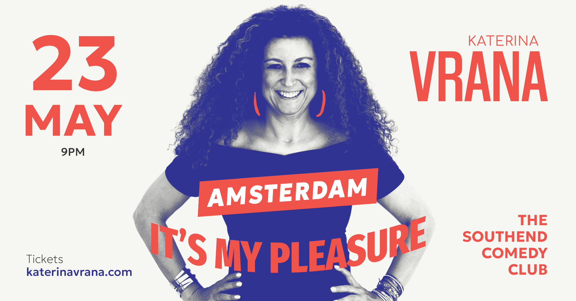 Katerina Vrana, one of Greece‘s top stand-up comedians, is coming to Amsterdam on May 23 at 9pm at The Southend Comedy Club with her show “It’s My Pleasure!”.